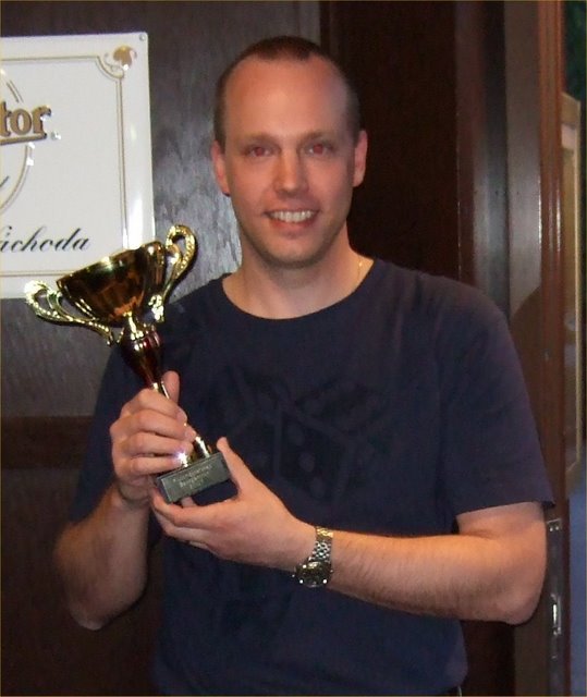 I finalen, som liksom semifinalen mot Martin spelades på Einars gamla spel, så fick Nicolas snabbt ihop fler poäng än i fjolårets final (hemska 0-17 mot Uffe) och han tuffade snabbt på till 5 eller 7-0 innan jag släpptes in i matchen. När jag väl kom igång och även tärningarna började rulla min väg så fick Nicolas det tungt. När bucklan var färdig att delas ut så hade Nicolas poängtavla stannat på 11 i 17-poängsmatchen. Men Nicolas, det är bara att bryta ihop och komma igen. Det blev i alla fall 11 poäng mer än i förra finalen. Med den ökningen blir det tredje gången gillt nästa år. Och ärligt talat så kändes det faktiskt lite rättvist att jag fick vinna en större Uppsalaturnering efter dessa år och ett flertal sura finalförluster ;o).